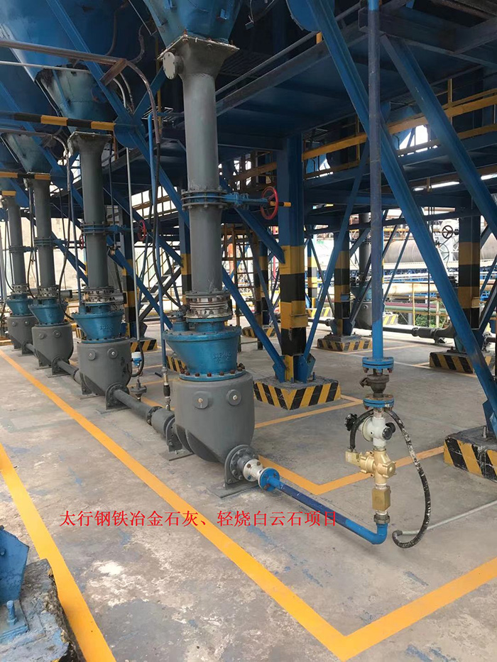 系統(tǒng)設(shè)計時,在AV輸送泵上部進(jìn)料口處設(shè)置1只氣動進(jìn)料閥(旋轉(zhuǎn)閥),該進(jìn)料閥采用DN200氣動旋轉(zhuǎn)閥。該閥具有密封性能好、耐磨性強(qiáng)、耐高溫、開關(guān)無卡瑟現(xiàn)象、無卡灰或積灰現(xiàn)象、使用壽命長等特點。